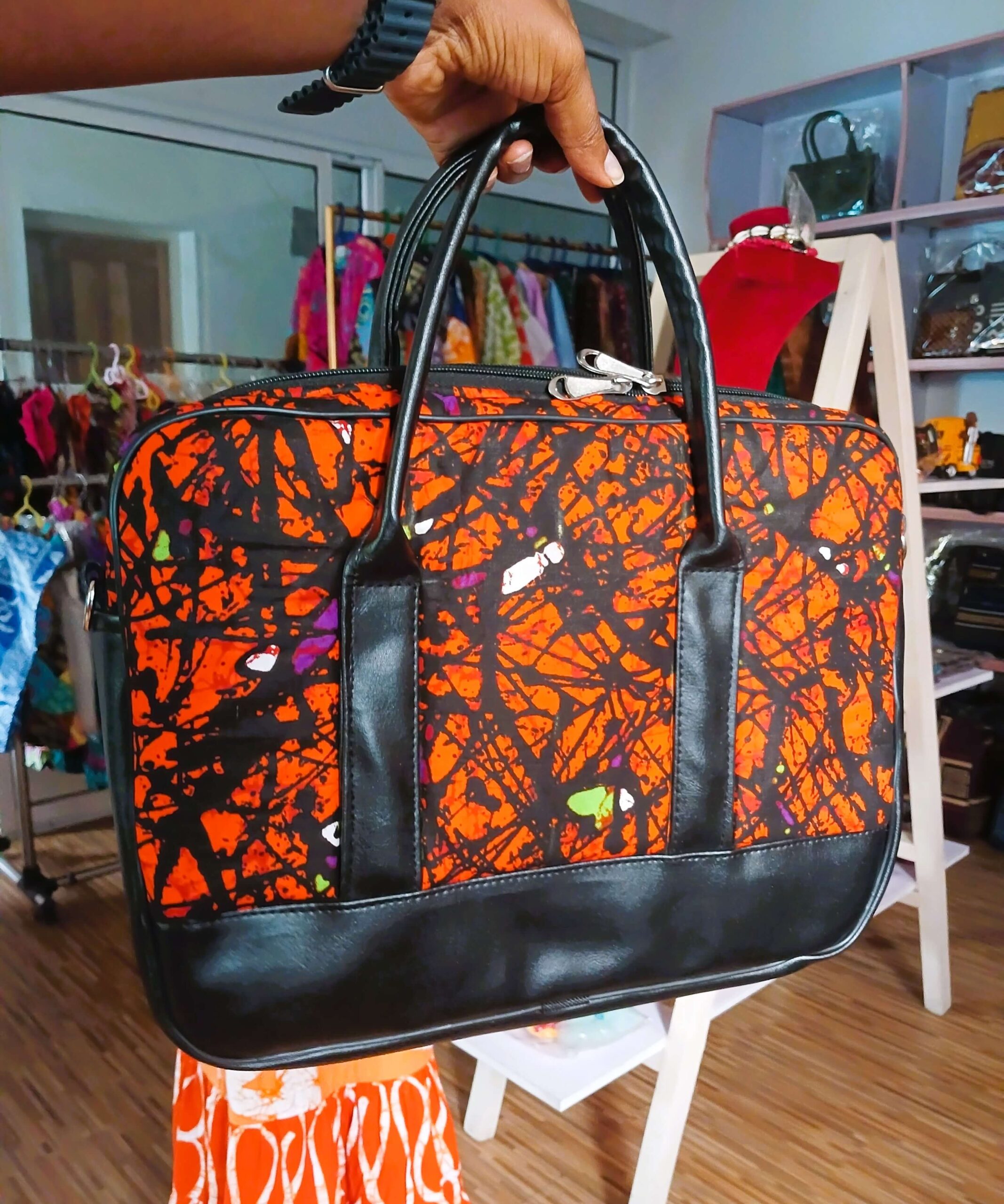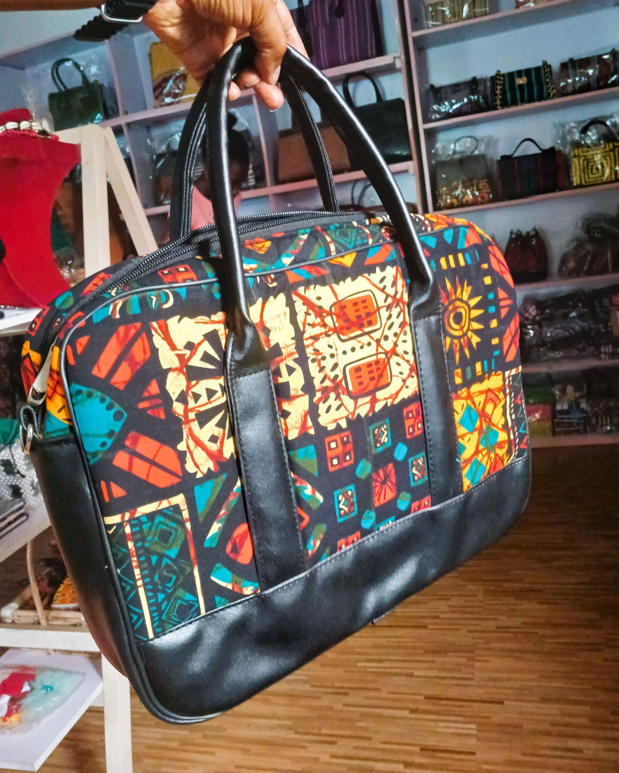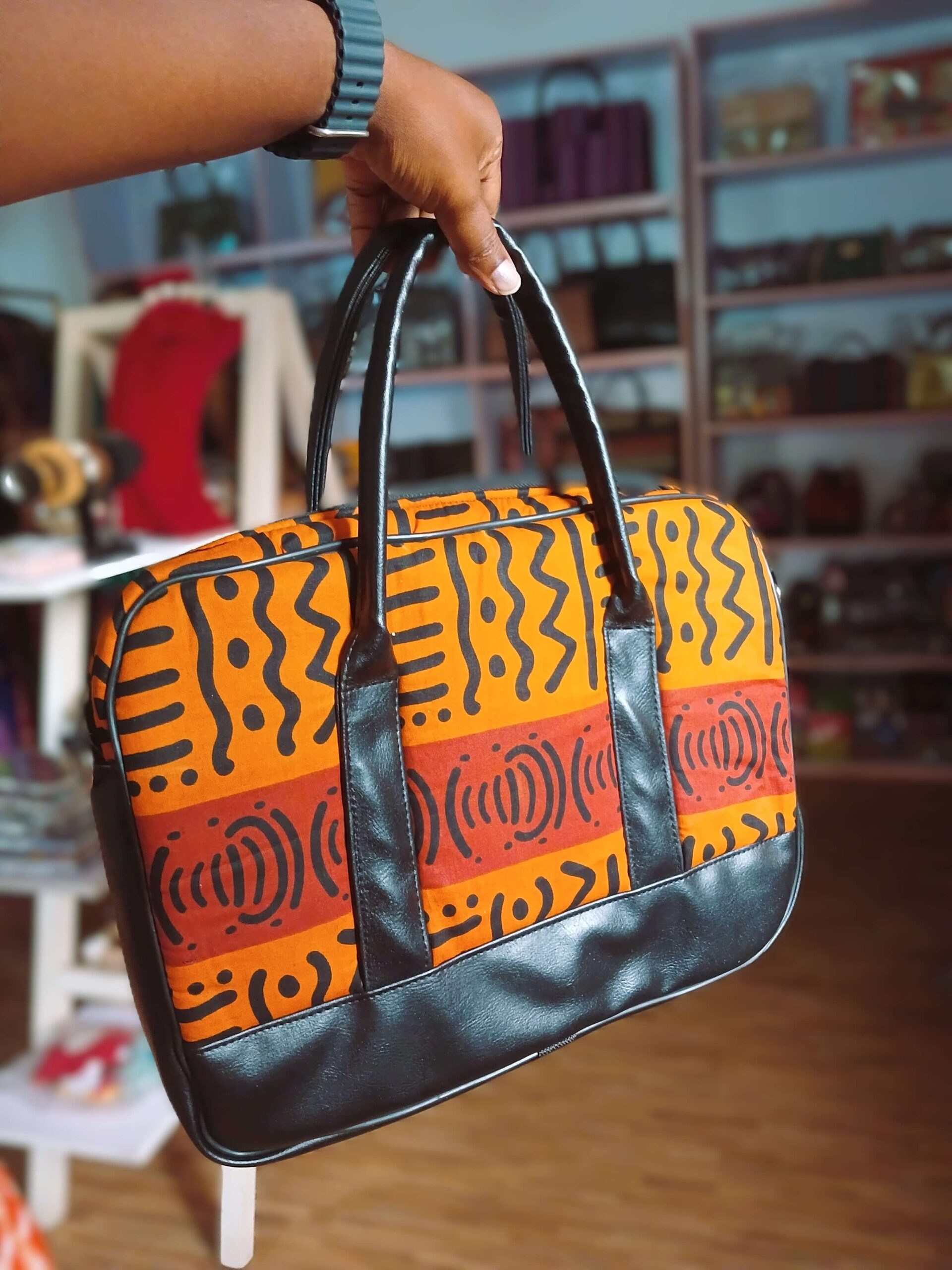 Sturdy, aesthetic, and functional Ankara Laptop bag. They make the best functional gifts out of Africa for your loved ones.